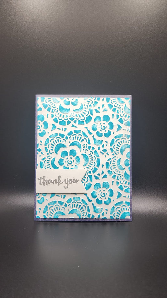 Handmade Thank you Floral Card - Teal